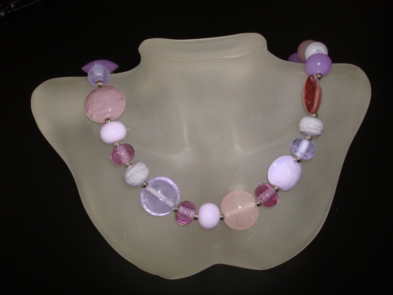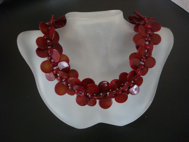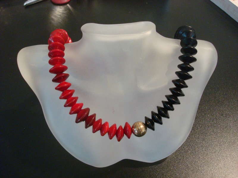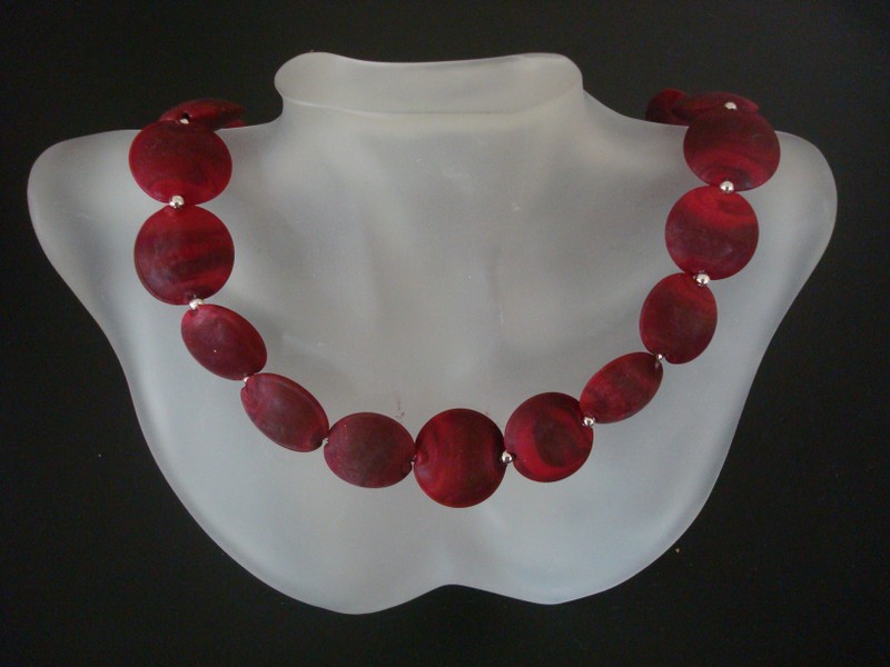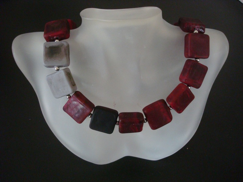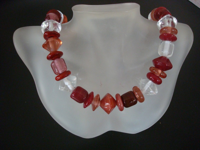 Glaskette, dunkelrot braun, klar, 47 cm.