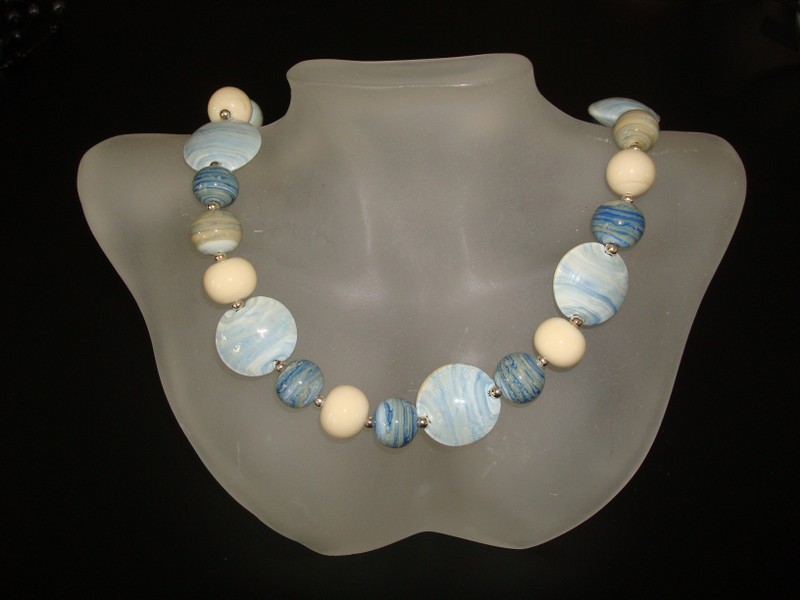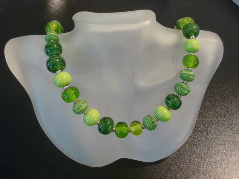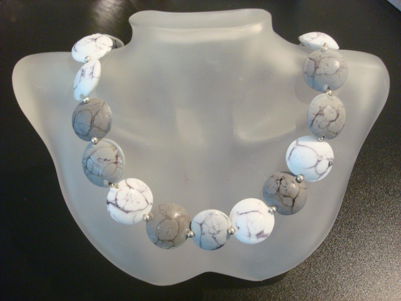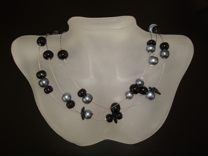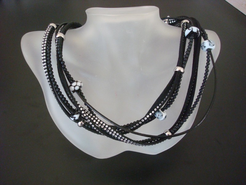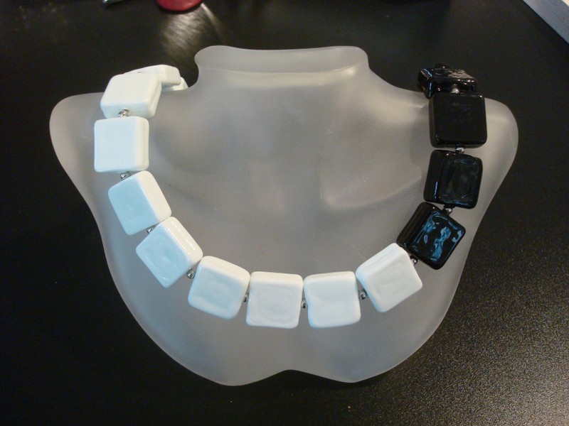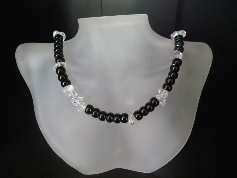 Glaskette, schwarz weiss, glanz, 48 cm.