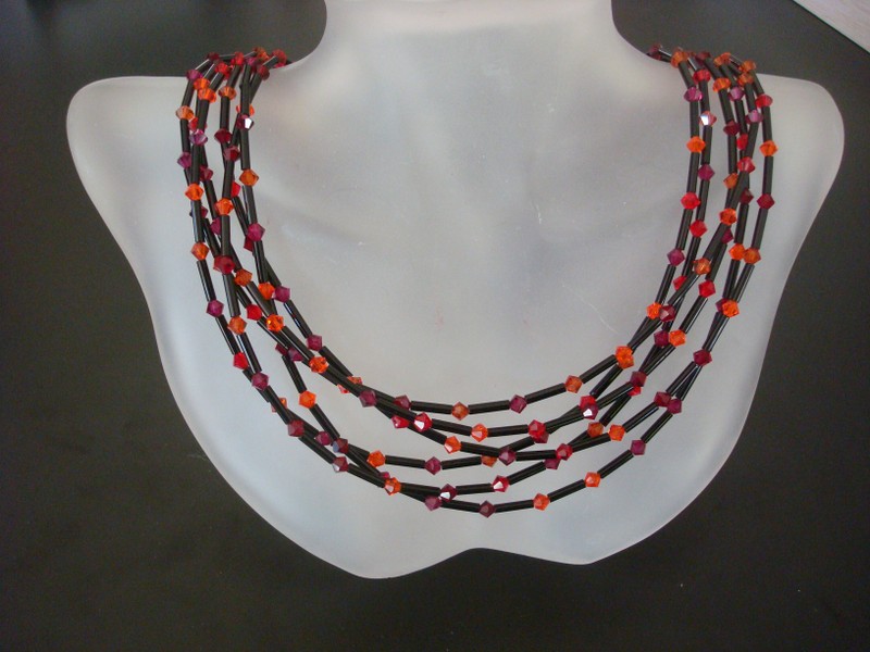 Kette aus Swarowski, sechs Stränge, rot orange schwarz,