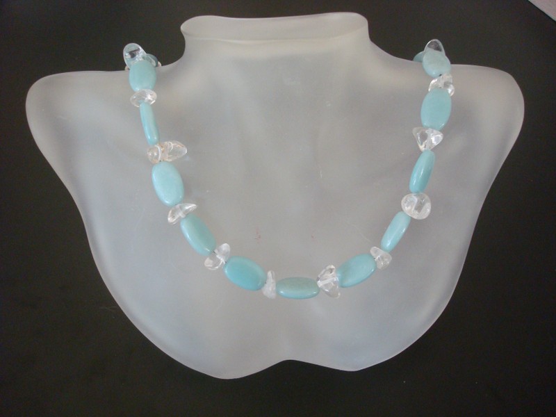 Kette aus Amazonit und Bergkristall, ca. 47 cm.