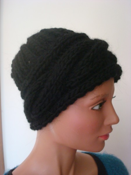 Mütze, schwarz, Wolle/Synthetik, handgestrickt.