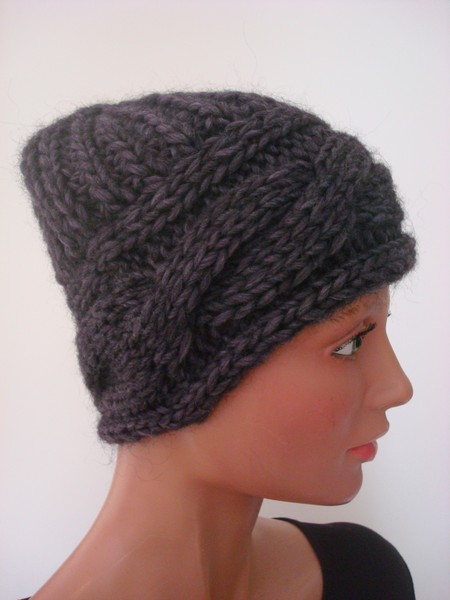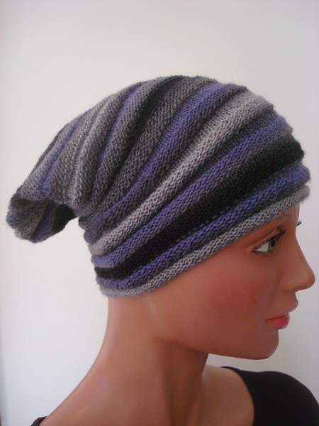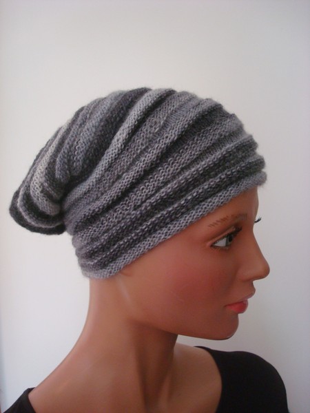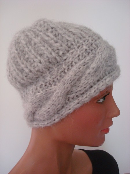 Mütze, grau, Wolle/Synthetik, handgestrickt.