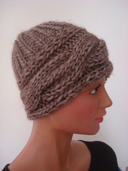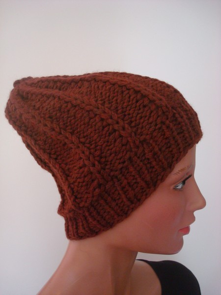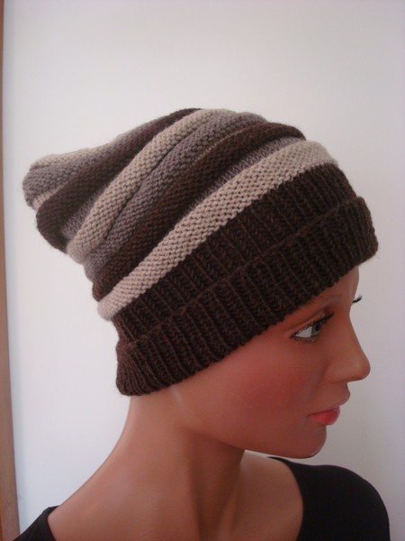 Mütze, braun, Wolle/Synthetik, handgestrickt.