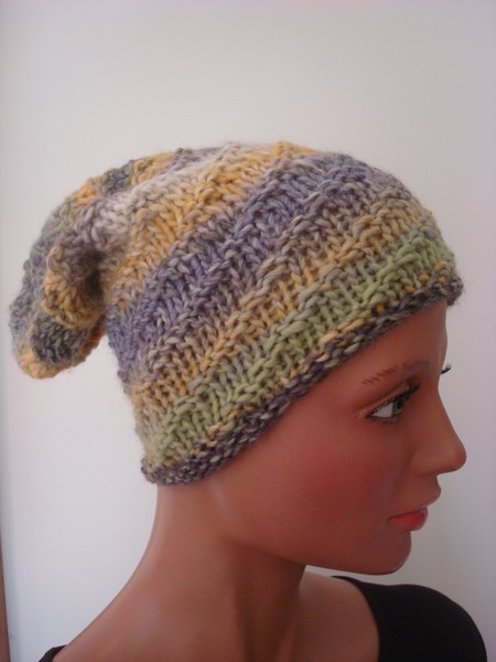 Mütze, natur meliert, Wolle/Synthetik, handgestrickt.