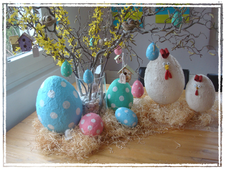 Individuell entsteht ein Sujet aus Power-Tex ( Eule, Pilz Frosch, Kugel, Huhn, Ei )